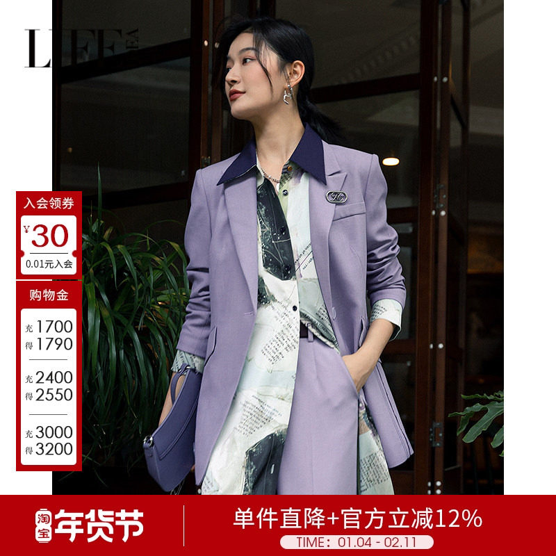 莱芙艾迪儿品牌女装秋季新款紫色西装外套时尚洋气减龄小西服百搭