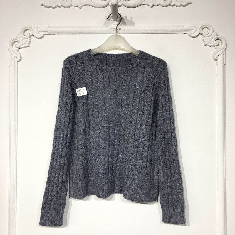 曼哈芙品牌女装圆领羊绒衫毛衣秋短款上衣复古绞花针织打底衫羊毛