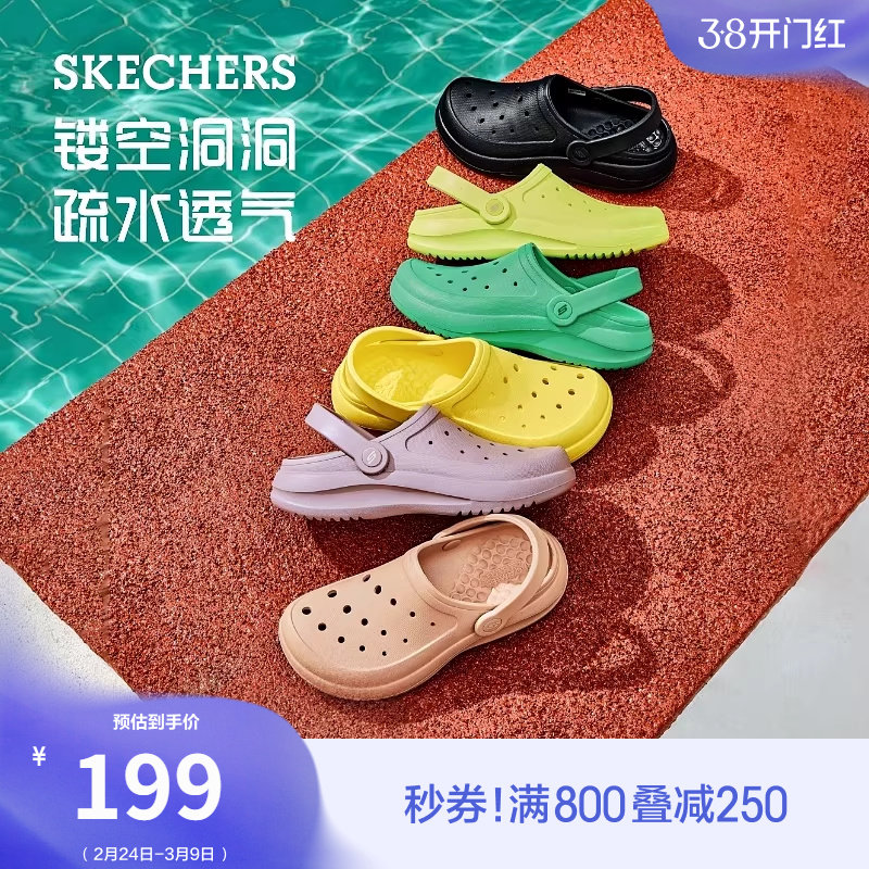 斯凯奇泡泡鞋女鞋洞洞鞋舒适凉鞋外穿沙滩鞋软底拖鞋时尚百搭凉拖
