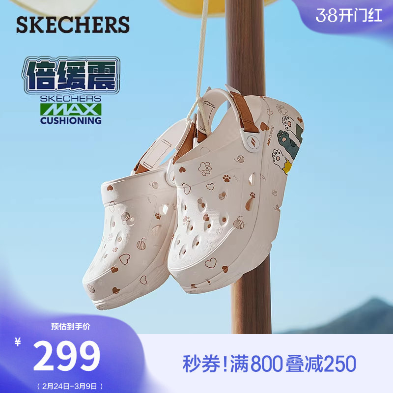斯凯奇春季女鞋潮流萌爪洞洞鞋厚底增高沙滩鞋踩屎感休闲凉鞋拖鞋