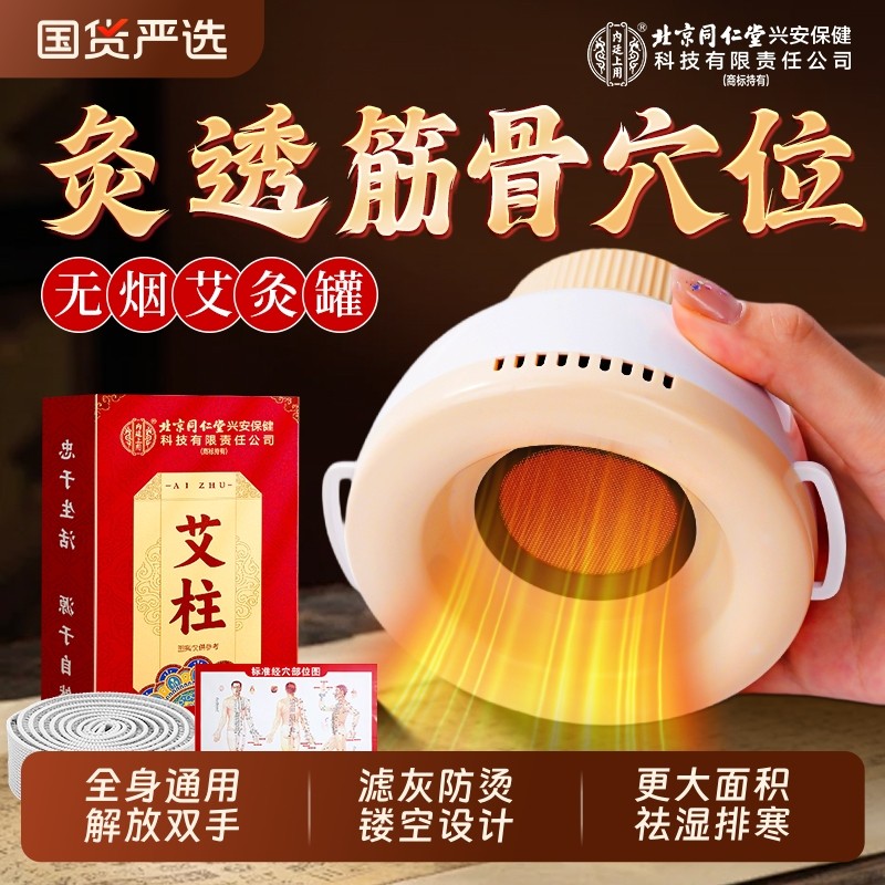 北京同仁堂艾灸盒随身灸家用艾灸柱器具大全无烟热敷包罐腹部肚子