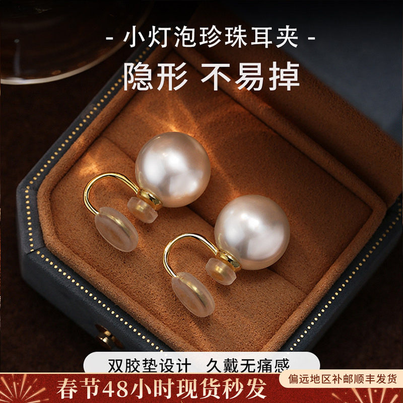 强光施家珍珠耳夹无耳洞蚊香盘耳环女耳坠2025新款高级感耳饰耳钉