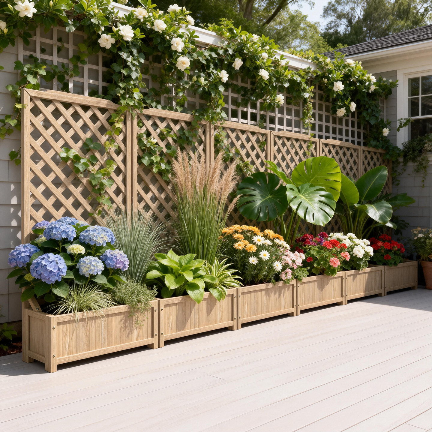 花童瑶户外防腐木花架阳台种植箱花盆庭院隔断爬藤架花园网格栅栏