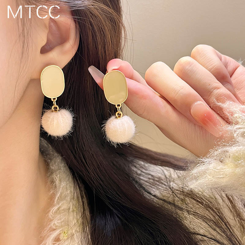S925银针秋韩国冬温暖毛球耳钉气质简约滴油耳环优雅淑女耳饰278