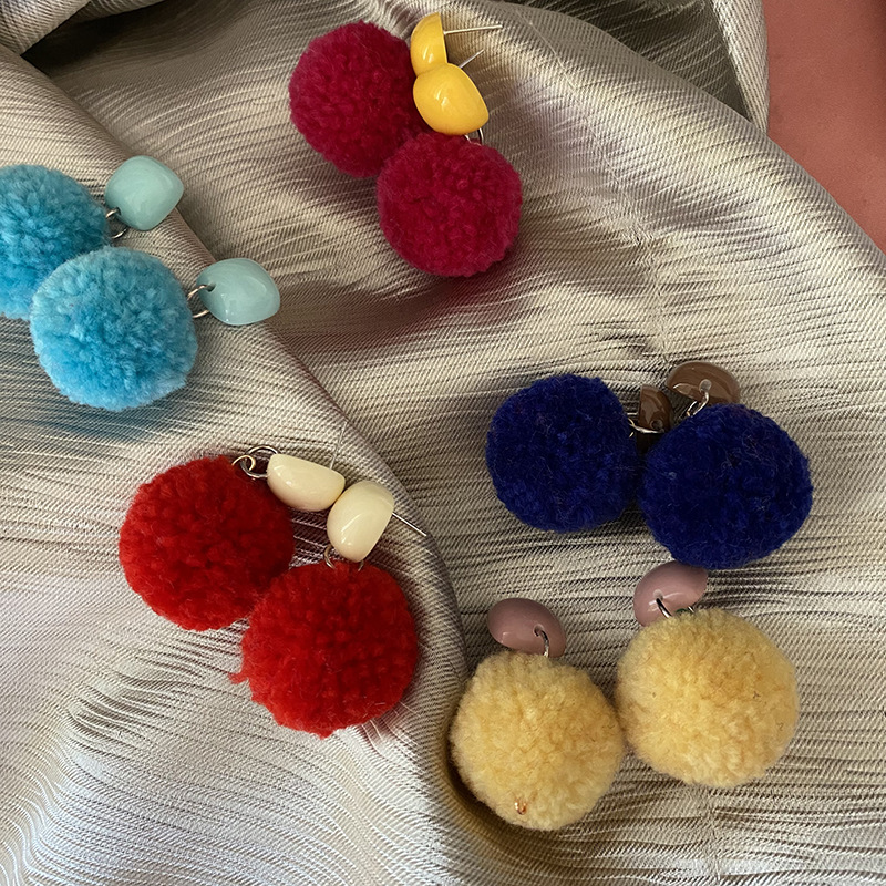 绒绒圆球~韩国新秋冬植绒毛球亚克力耳扣耳环时尚爆款美拉德耳饰