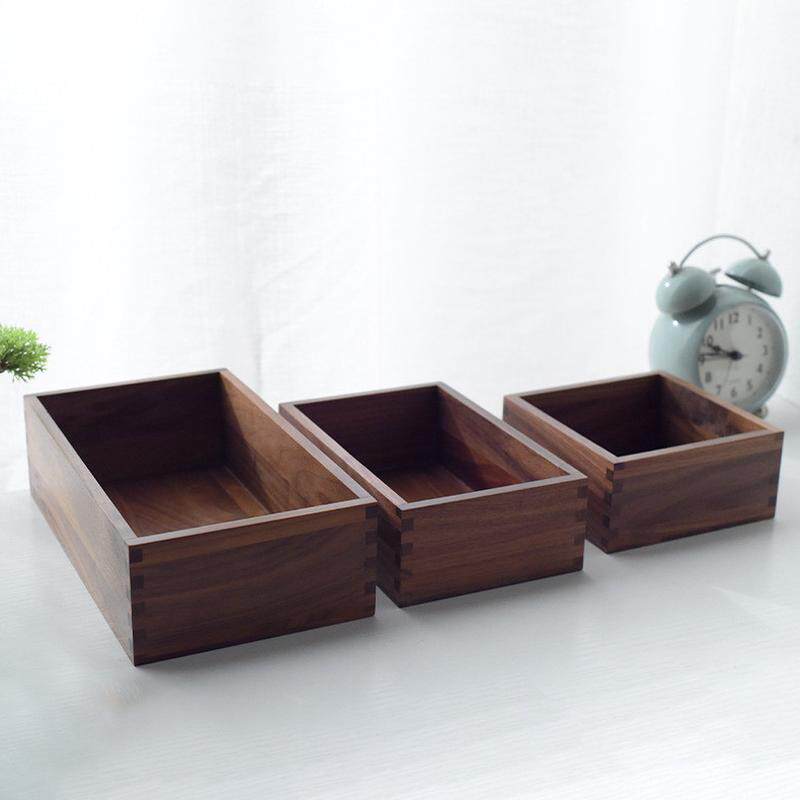 木制收纳盒黑胡桃木盒桌面陈列长方形收纳无盖杂物实木储物箱定制