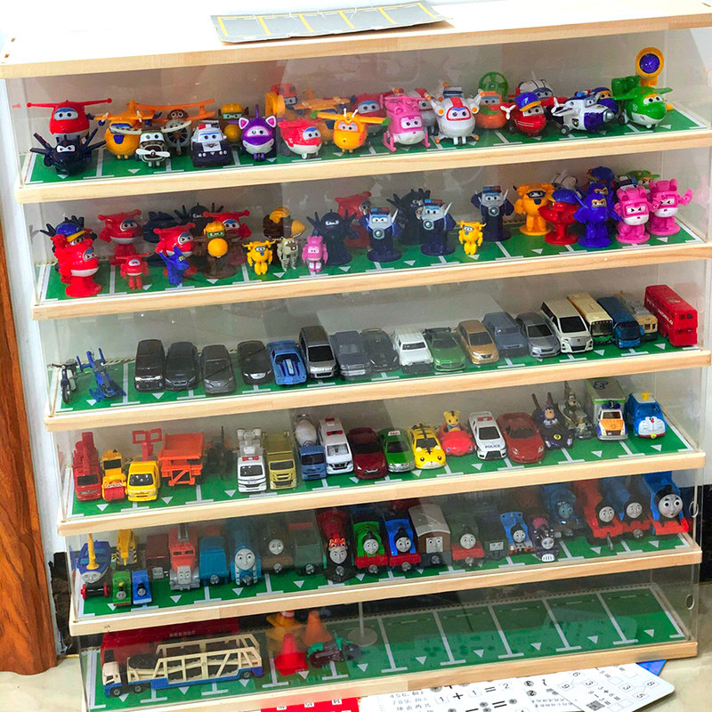 1:64小汽车木制收纳盒多格车模多美卡风火轮小火车防尘盖展示柜