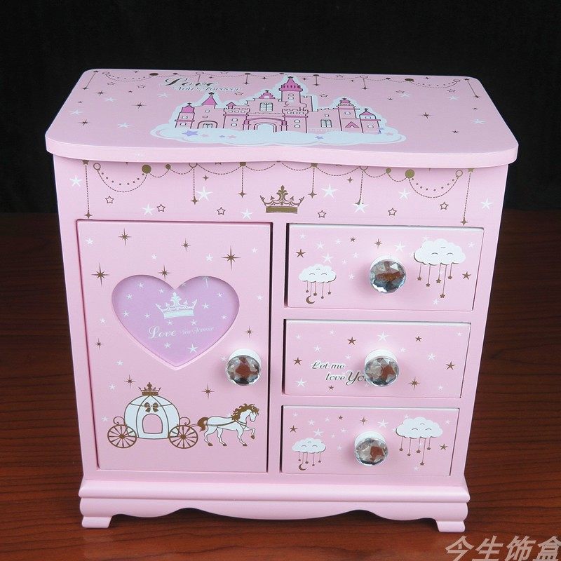 城堡首饰盒木质公主欧式粉色木制收纳盒手饰品盒学生女孩生日礼物