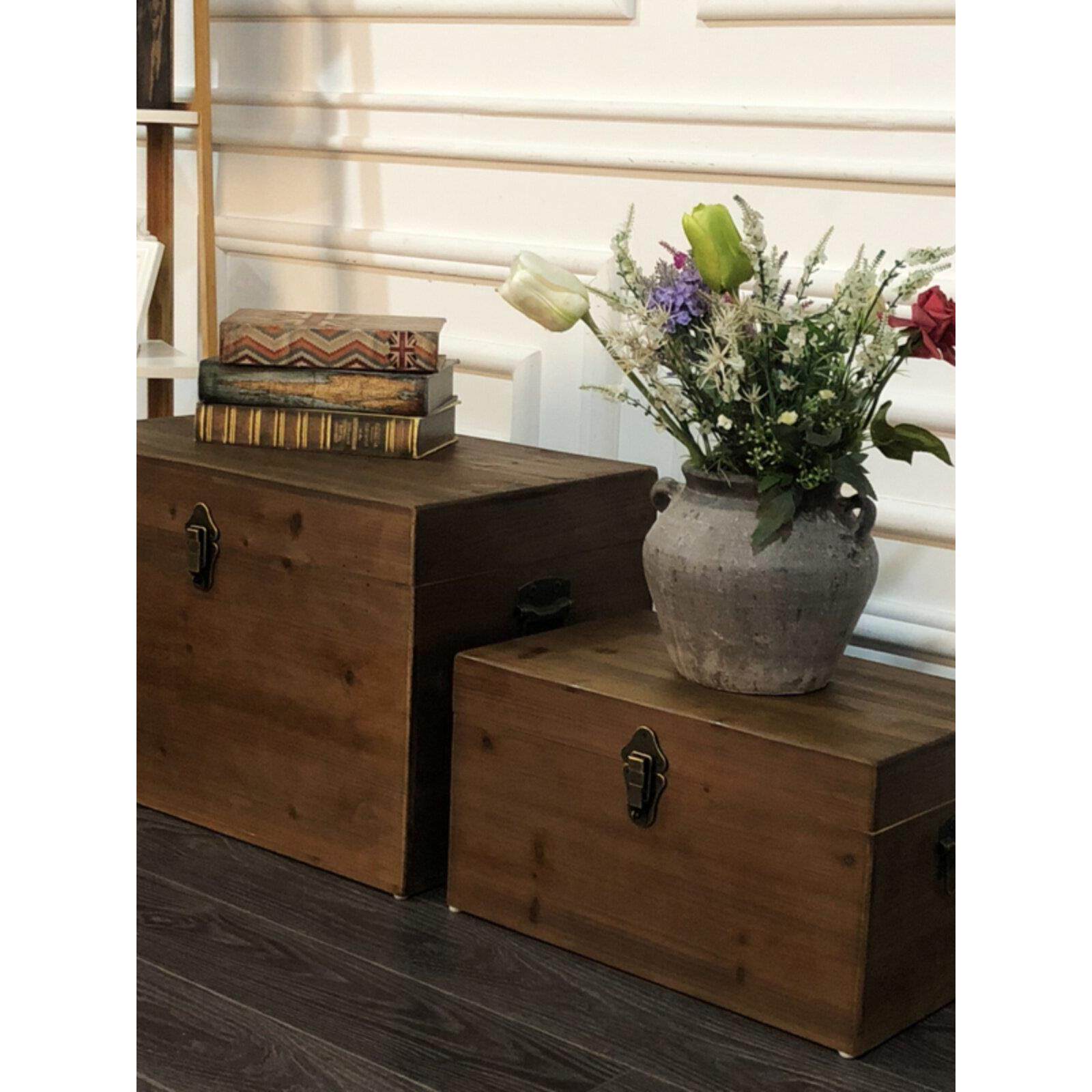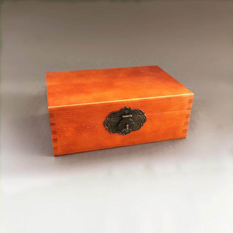 单层长方形覆古风木制收纳盒实木木盒书房杂物防尘木箱子带盖带锁