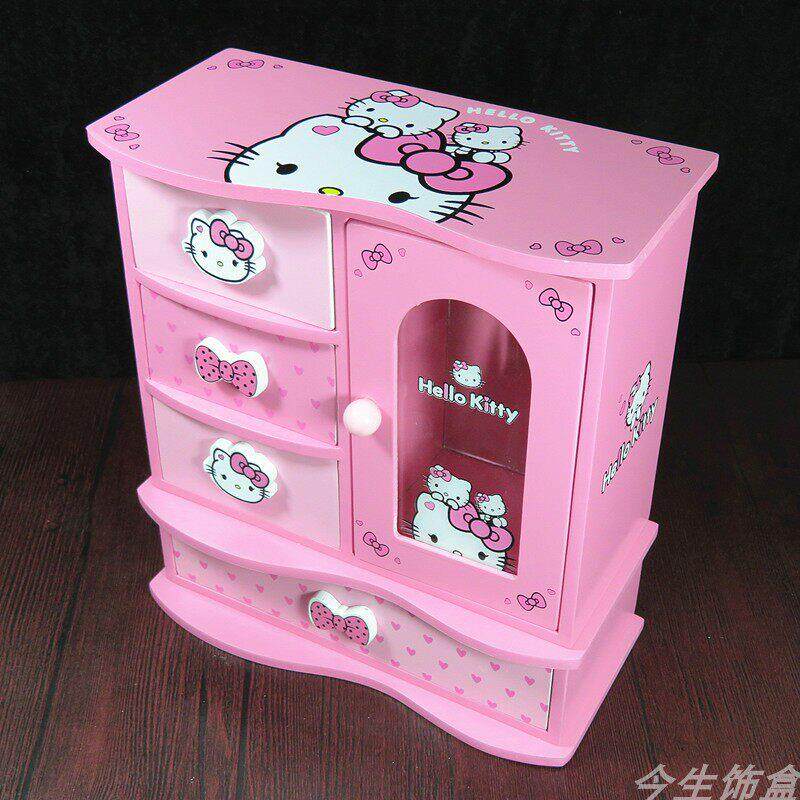 凯蒂猫首饰盒木质KT猫公主欧式卡通木制收纳盒饰品盒女孩生日礼物
