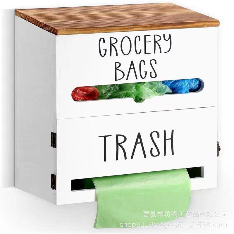 木制收纳盒壁挂式复古杂货袋收纳盒家用实木整理盒分配垃圾袋小号