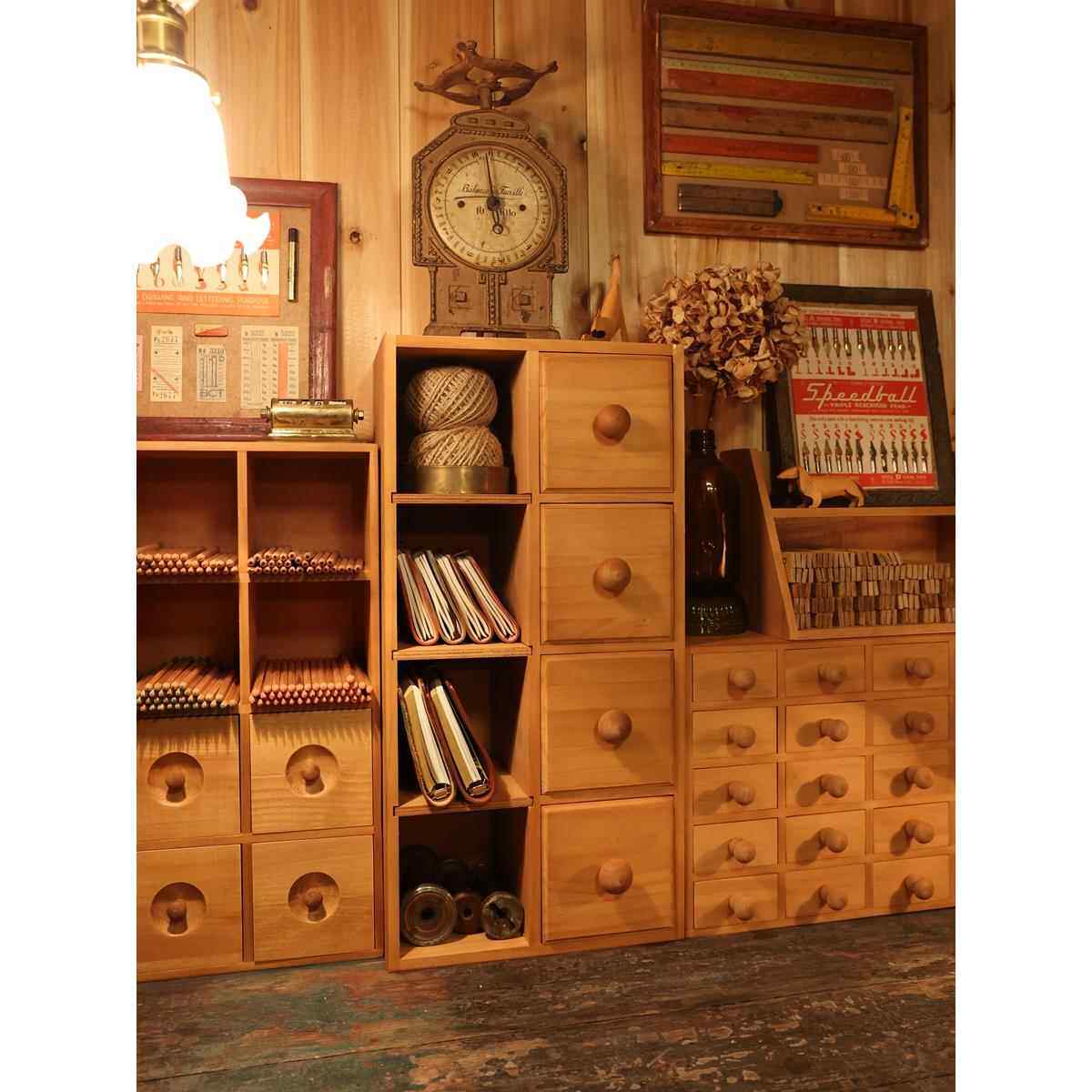 日式zakka粗糙木制收纳盒家用书桌抽屉式办公桌杂物化妆品整理盒