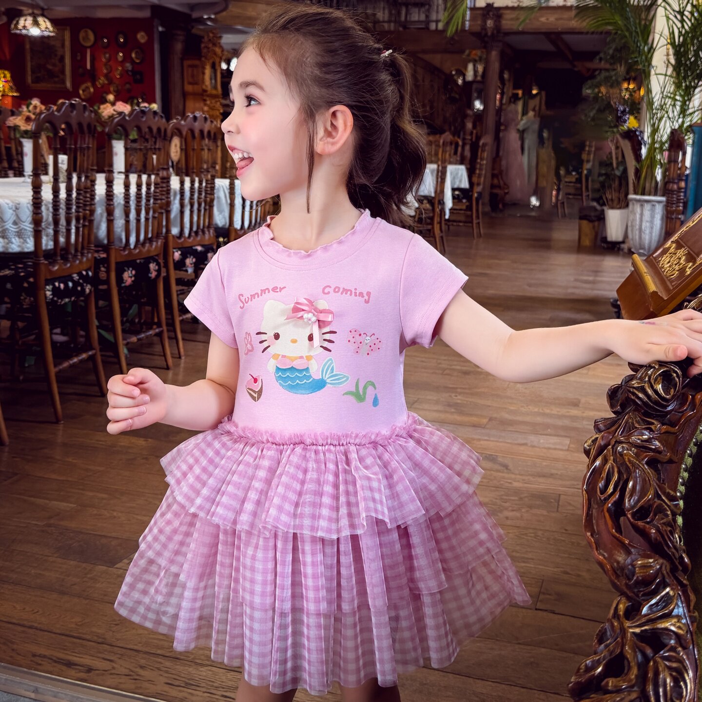 女童T裙短袖连衣裙2026新款儿童夏装梦幻印花蓬蓬裙女宝宝公主裙