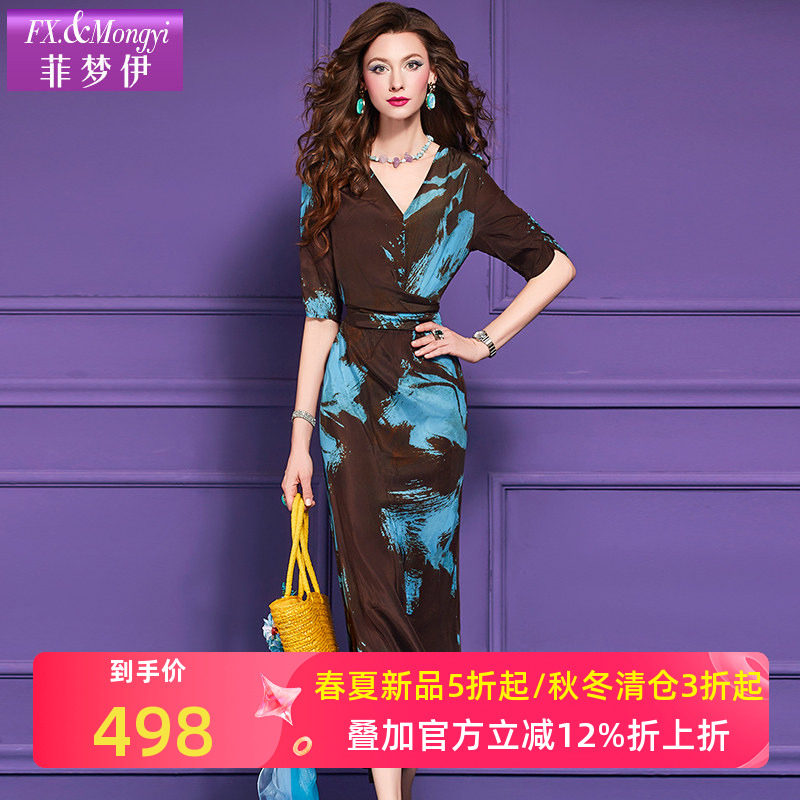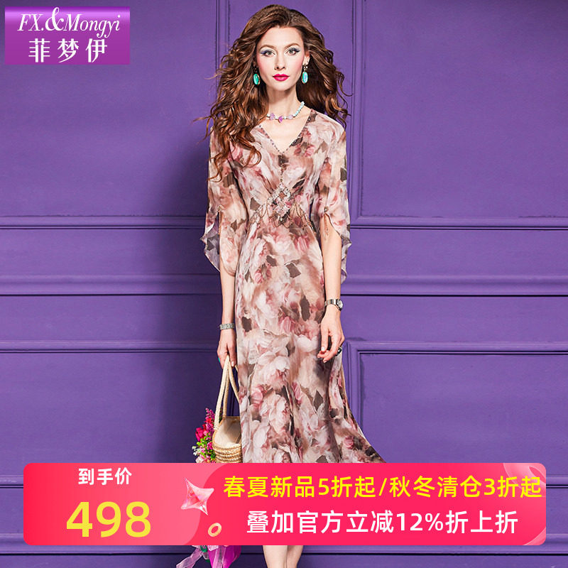 菲梦伊100桑蚕丝印花连衣裙女夏装重磅高端真丝年轻款时尚长裙子