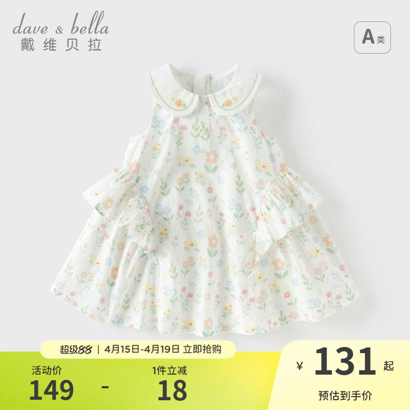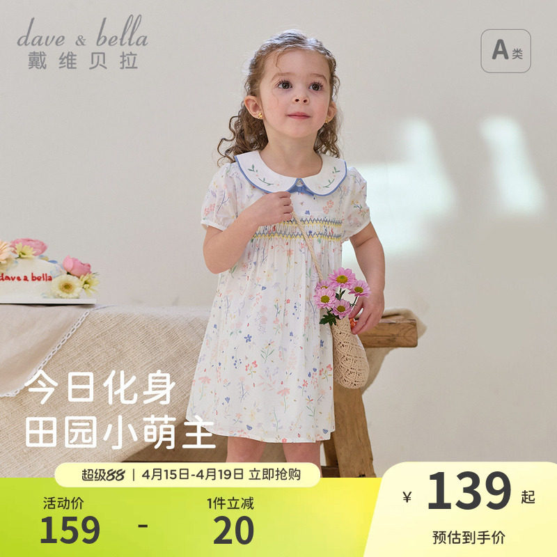 戴维贝拉女童纯棉连衣裙2026夏装新款儿童印花裙子宝宝A类碎花裙