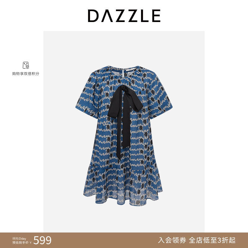 【奥莱专供】DAZZLE地素奥莱印花短袖连衣裙春夏装休闲裙子短裙女