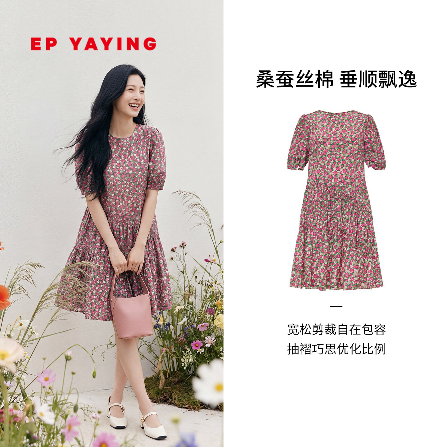 [口碑之作]EP雅莹连衣裙 桑蚕丝棉印花泡泡袖A字裙 春装新款4702A