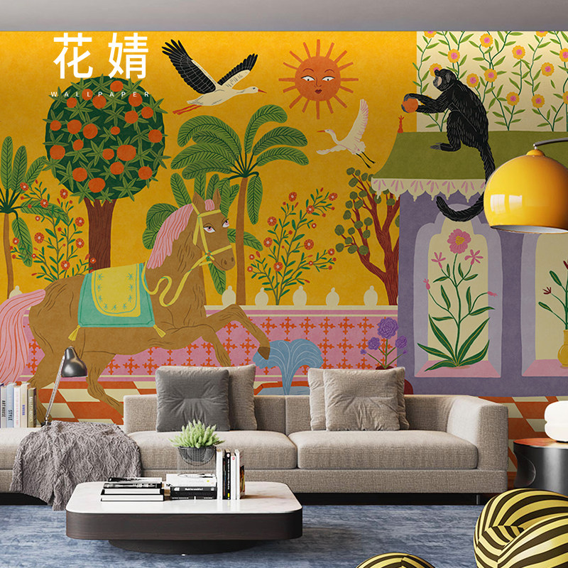 北欧异域风情壁纸花园客厅墙纸卧室无缝定制壁画轻奢电视背景墙布