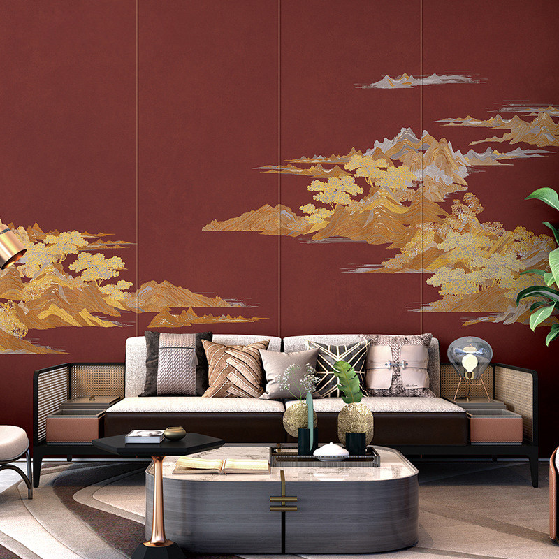 墙布壁纸轻奢背景墙客厅墙纸装饰新电视壁布壁画中式沙发山水2025
