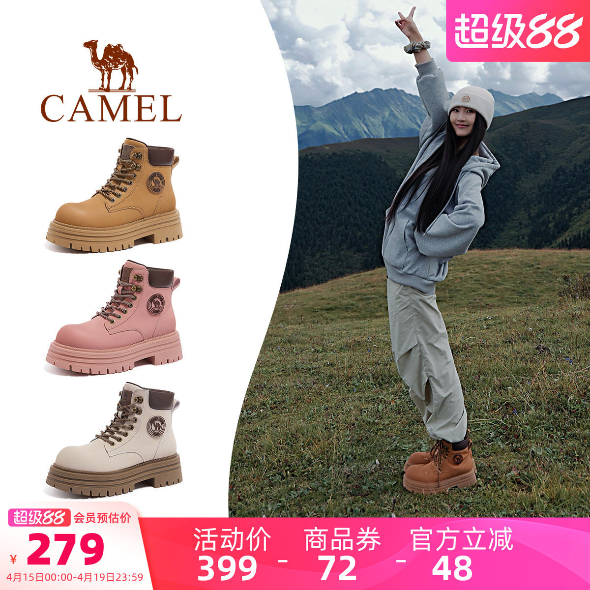 骆驼马丁靴女鞋2026春季新款工装大黄靴英伦风厚底户外登山短靴子