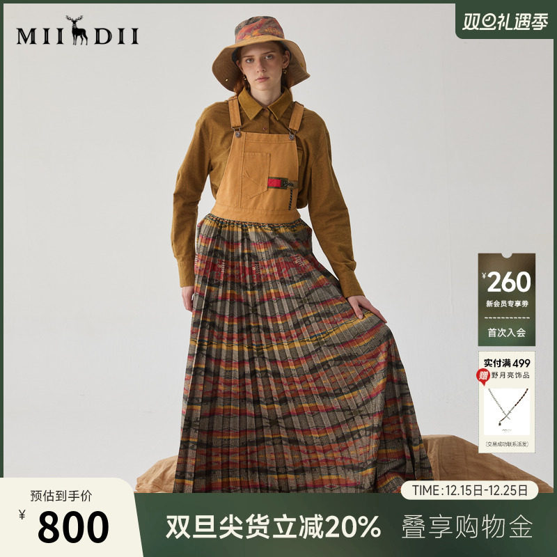 - 牛仔背带裙女中长款