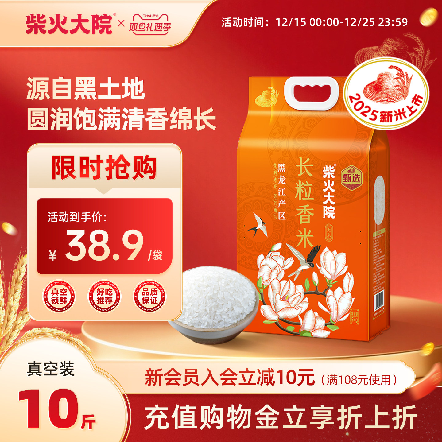 2025新米柴火大院生态长粒香米10斤真空装黑龙江香米粳米礼赠家用