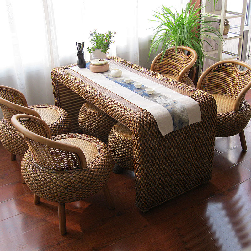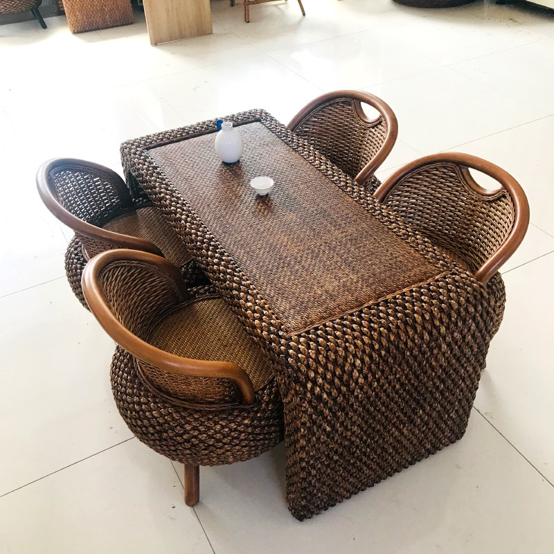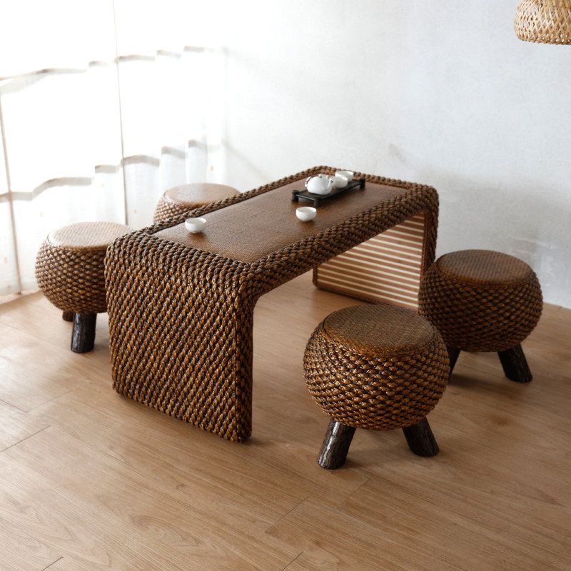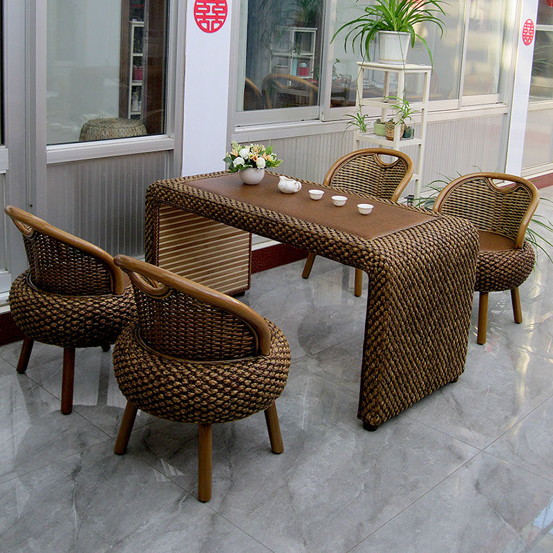阳台桌椅组合简约休闲小户型客厅茶几藤编实木仿古功夫喝茶桌艺术