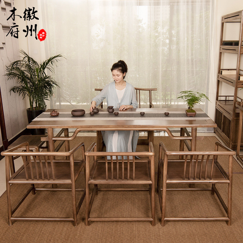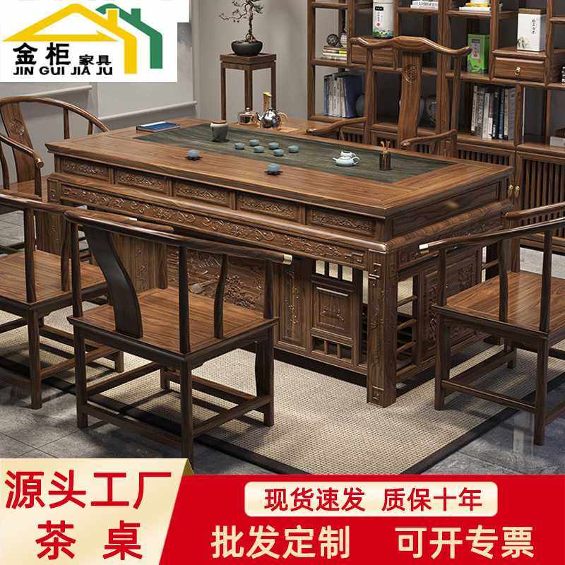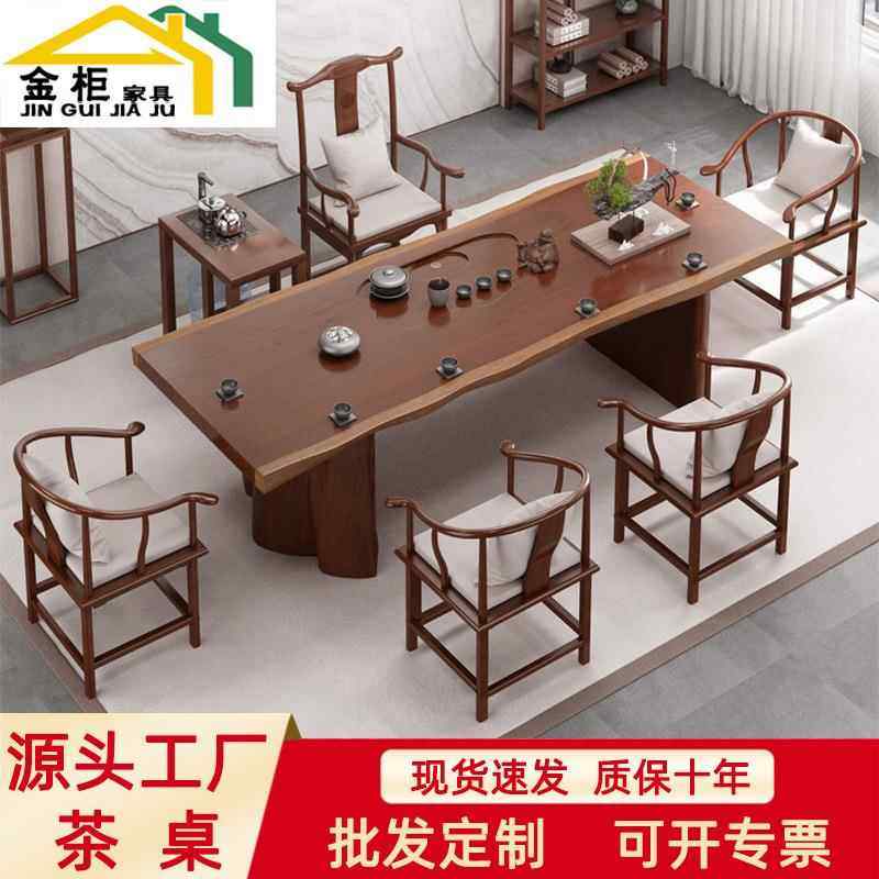 新中式实木仿古茶桌椅组合客厅大板茶台全套办公室功夫泡茶一体桌