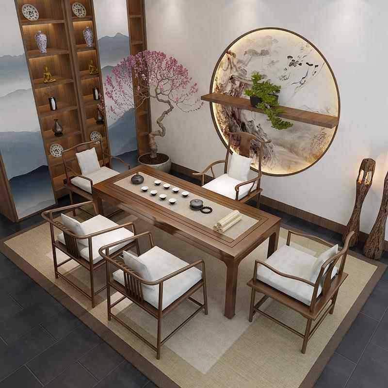 新中式实木茶桌 会客洽谈四五人位泡茶台仿古茶桌椅组合功夫茶桌