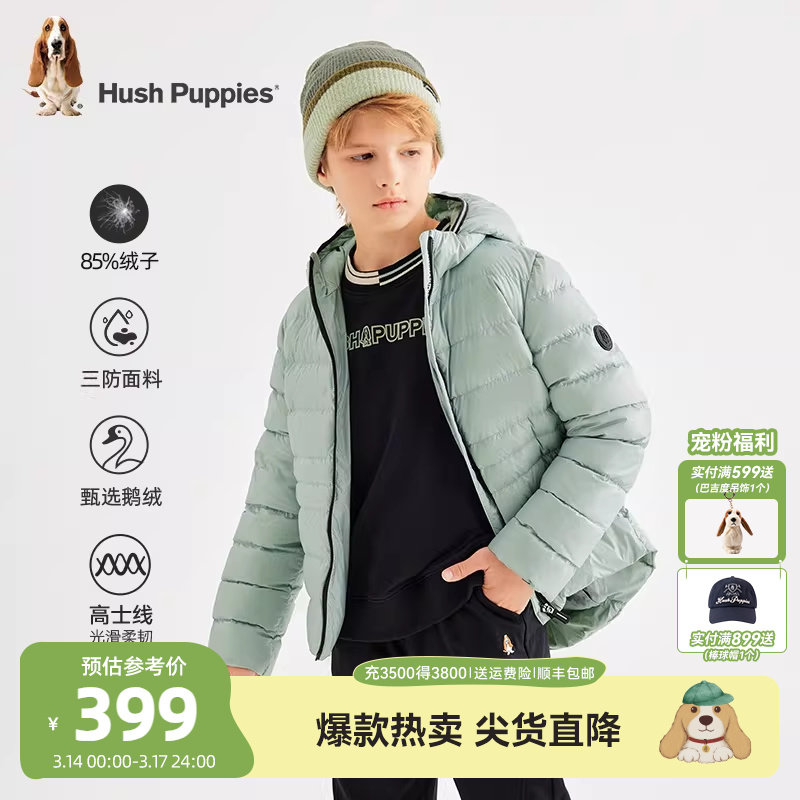小猪班纳童装2026冬装新款儿童轻薄羽绒服中大童男童带帽羽绒外套