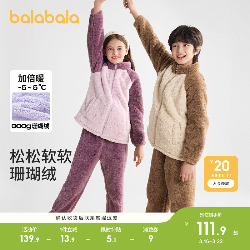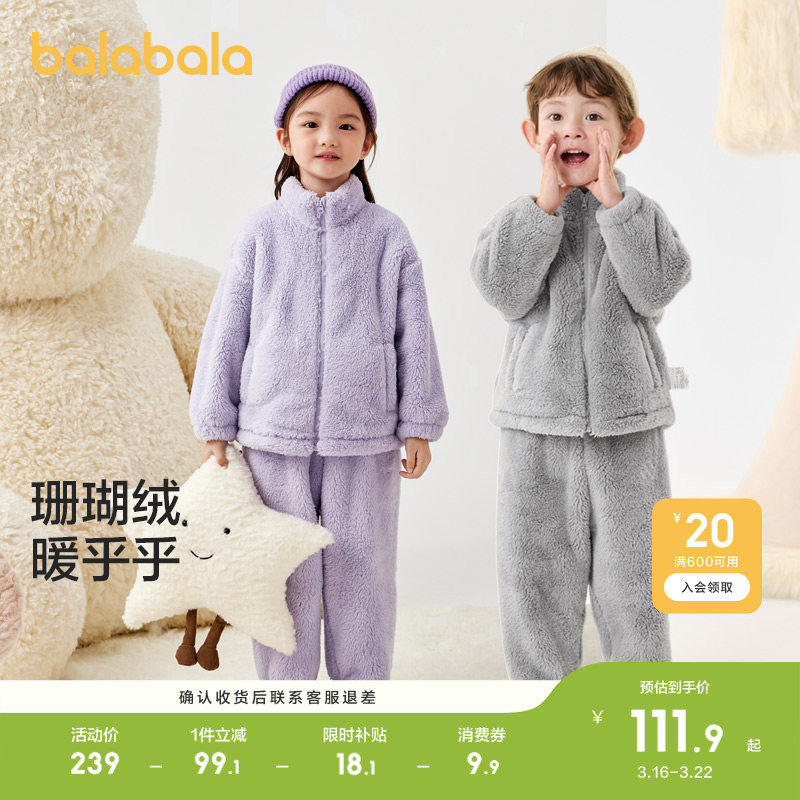 巴拉巴拉童装儿童睡衣套装男童冬装新款加厚珊瑚绒女童家居服外出