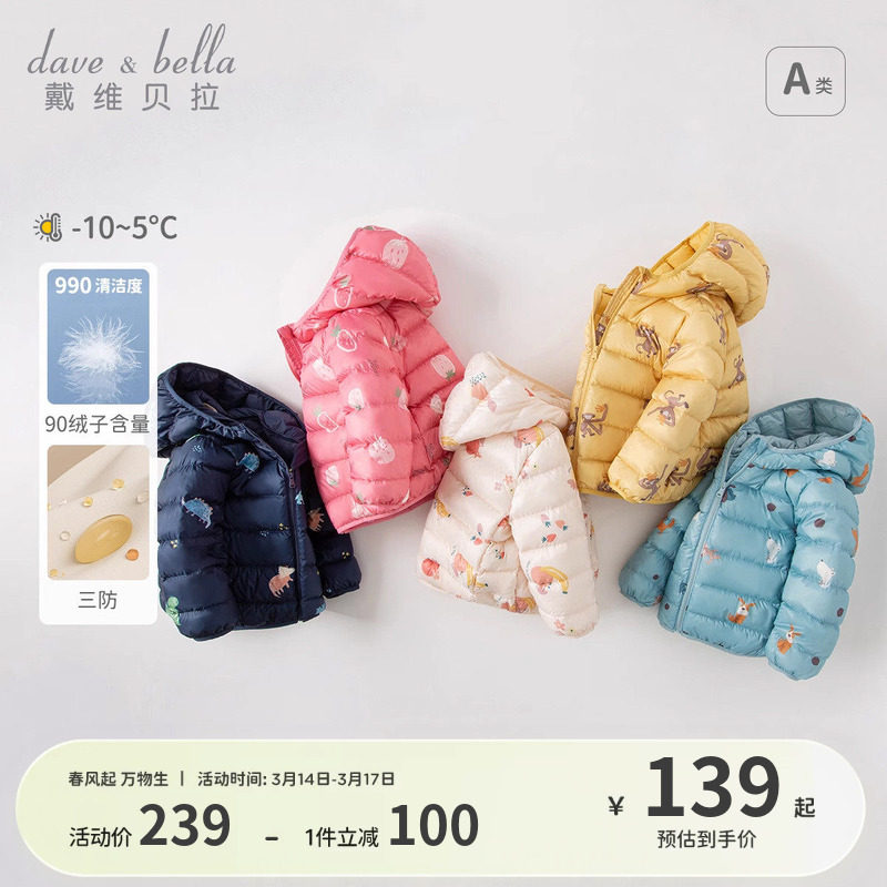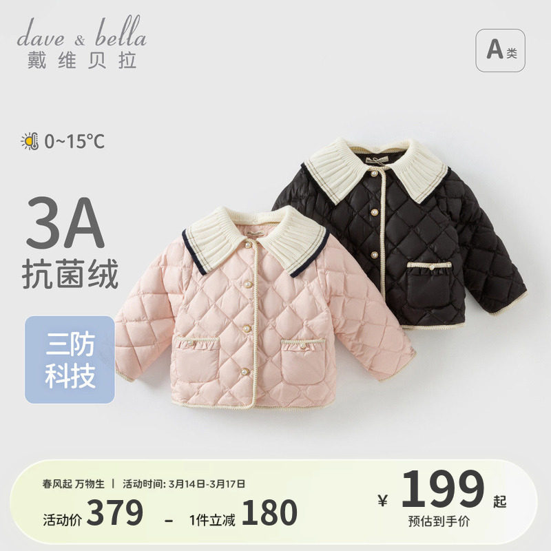 戴维贝拉女童轻薄羽绒服保暖冬装新款儿童三防保暖小香风外套童装