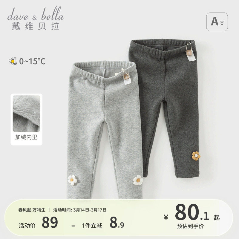 戴维贝拉儿童裤子2026冬装新款女童宝宝打底裤内里加绒弹力紧身裤