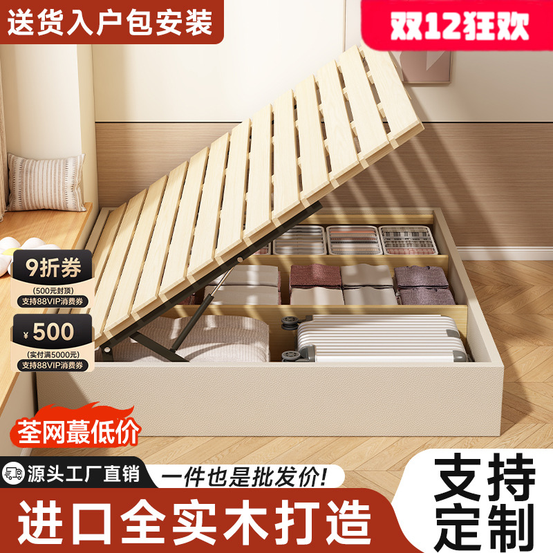 实木无床头榻榻米床气压储物床小户型收纳高箱床落地床架加密定制