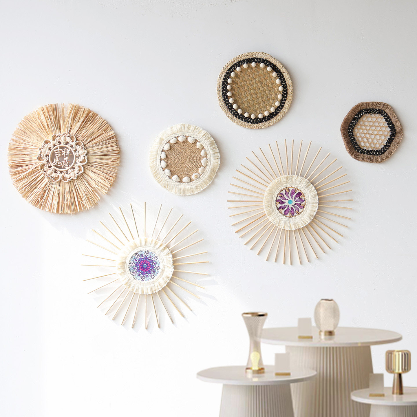 新品日式波西米亚风拉菲草编藤编民宿墙面挂饰客厅卧室背景墙装饰