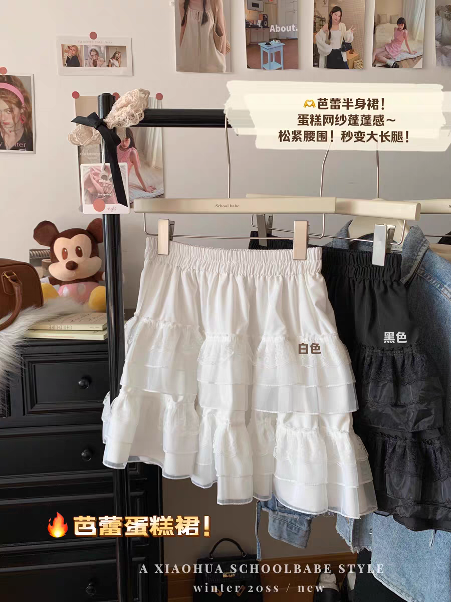白色网纱蕾丝蓬蓬蛋糕裙女春季2026新款松紧高腰显瘦垂坠感半身裙