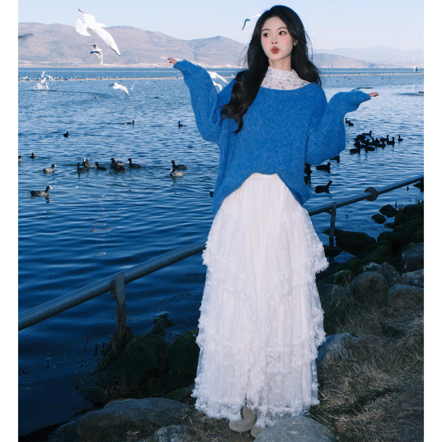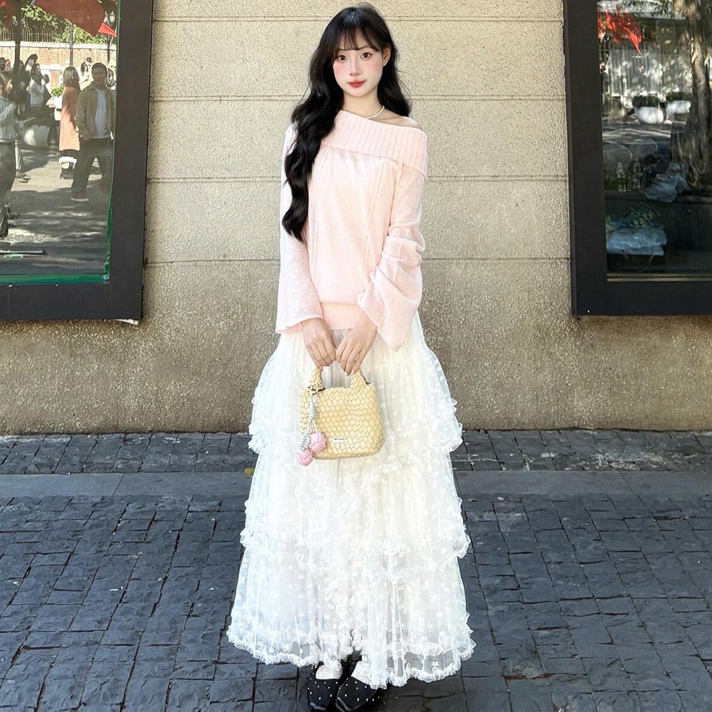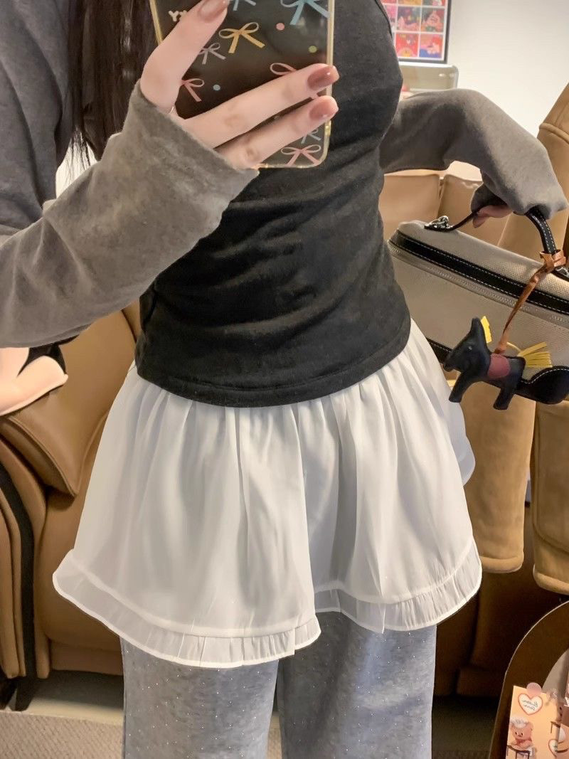 甜美温柔风白色网纱半身裙女秋冬松紧腰加绒针织A字显瘦蓬蓬半裙