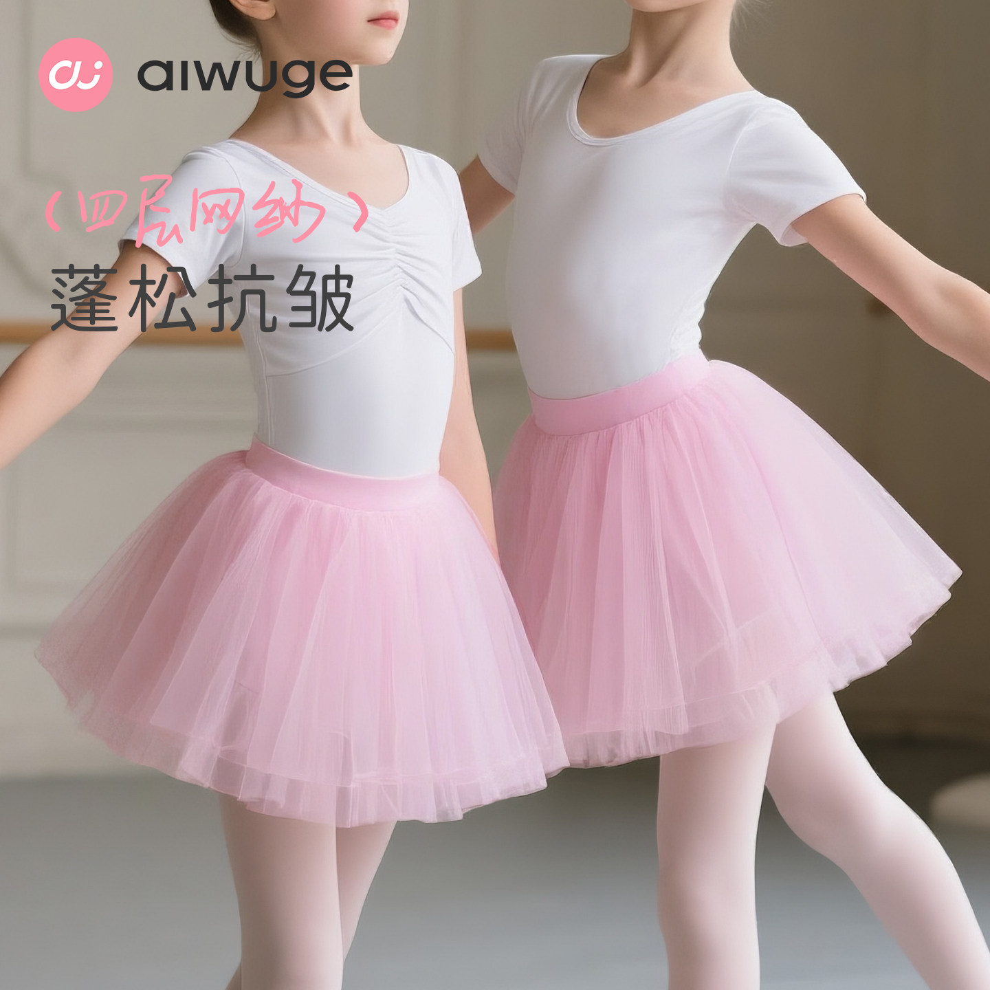 儿童舞蹈纱裙女童半身裙白色网纱裙蓬蓬裙芭蕾练功短裙跳舞粉色裙