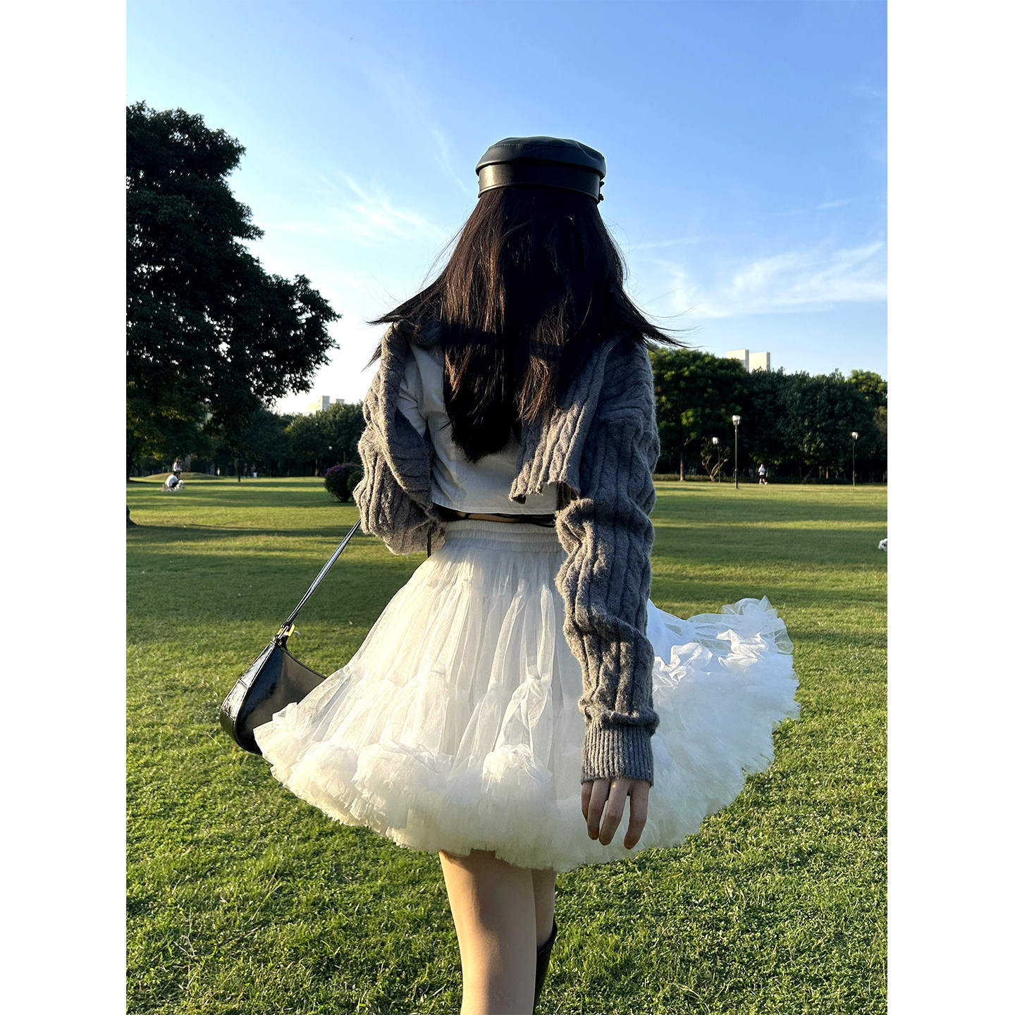 秋冬短款纱裙短裙网纱半身裙女2025新款白色小个子a字裙子蓬蓬裙