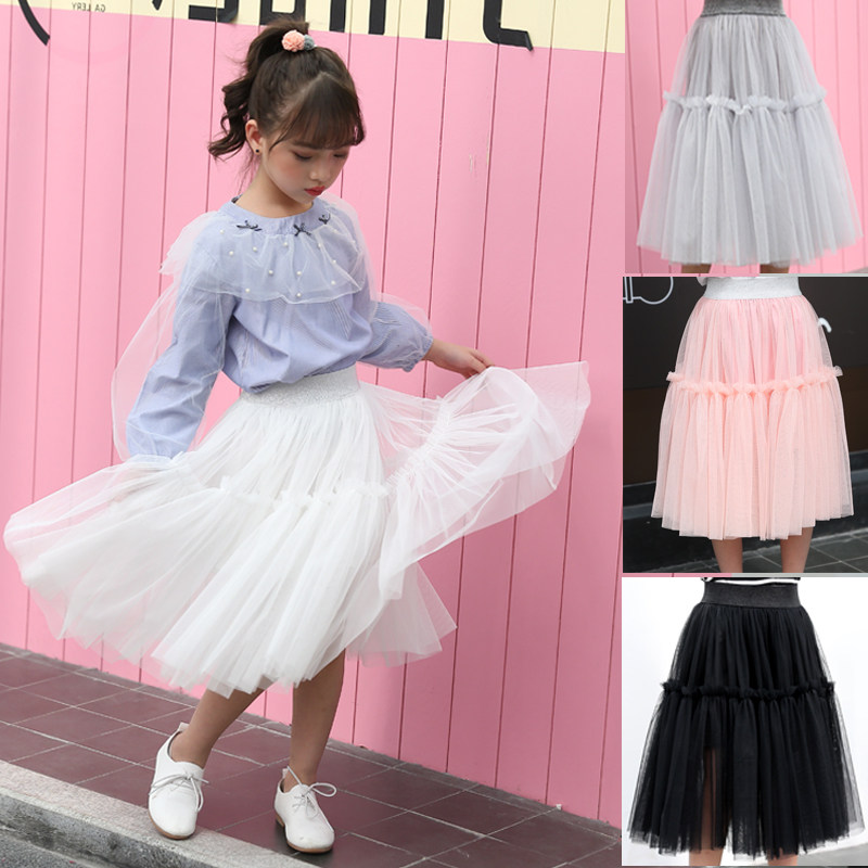女童半身裙短裙纱裙女宝宝百褶裙中大童白色蓬蓬裙长裙儿童网纱裙