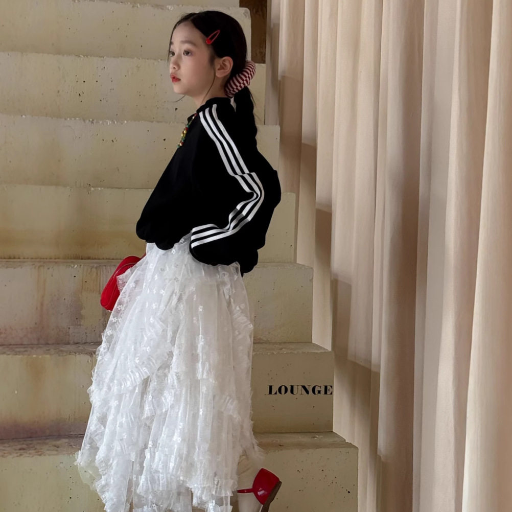 乔伊思童装女童半身裙秋款白色蕾丝网纱拼接不规则公主蓬蓬蛋糕裙