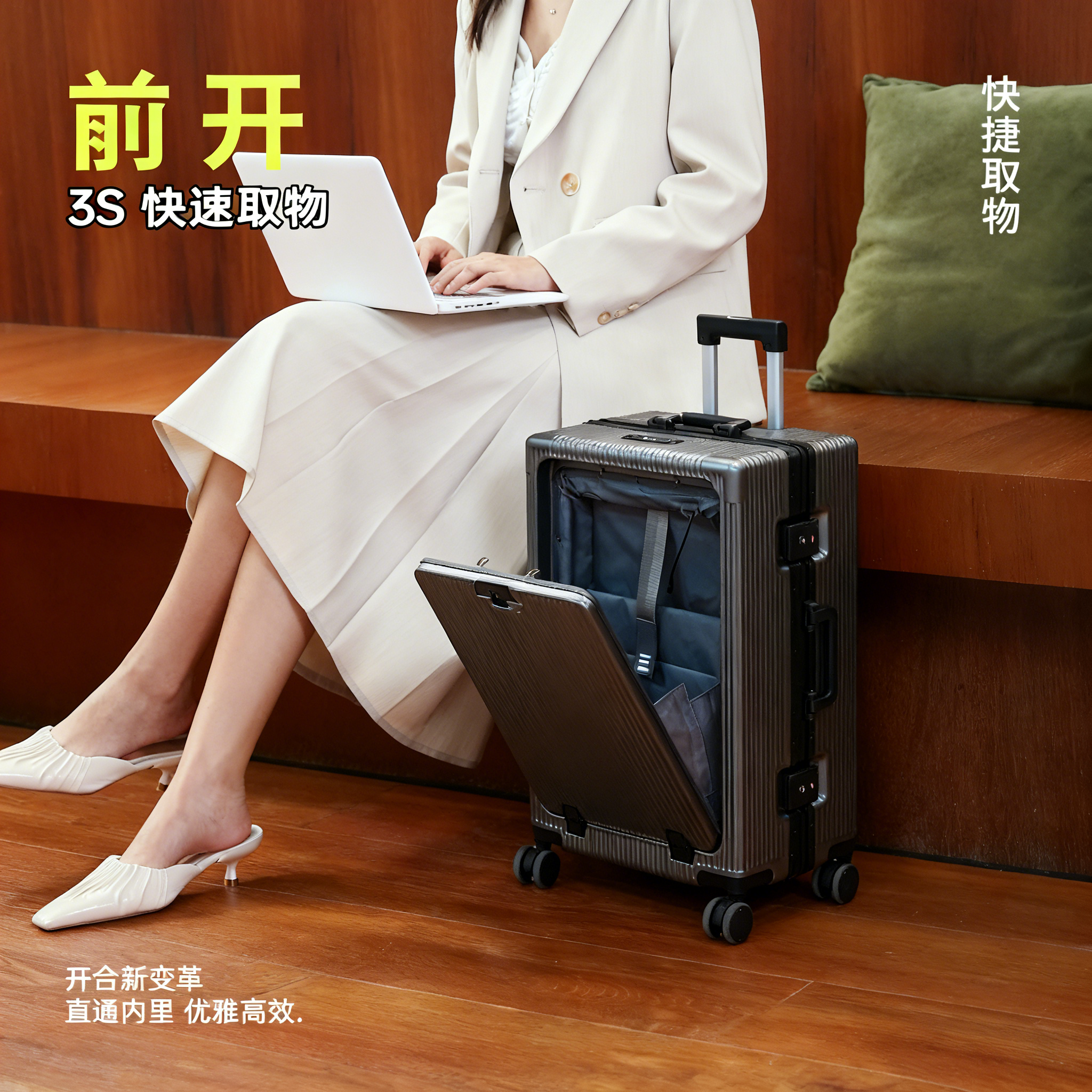 20寸侧开盖化妆行李箱女 多功能登机旅行箱 铝框商务拉杆箱男