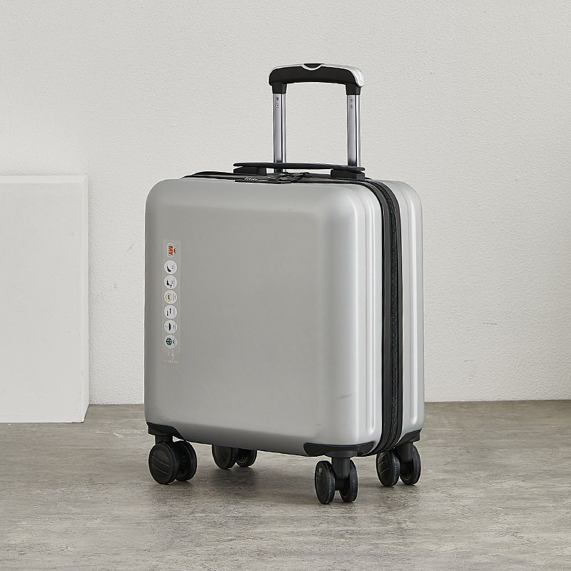银色行李箱小型18寸可登机旅行箱男士商务拉杆箱静音万向轮密码箱