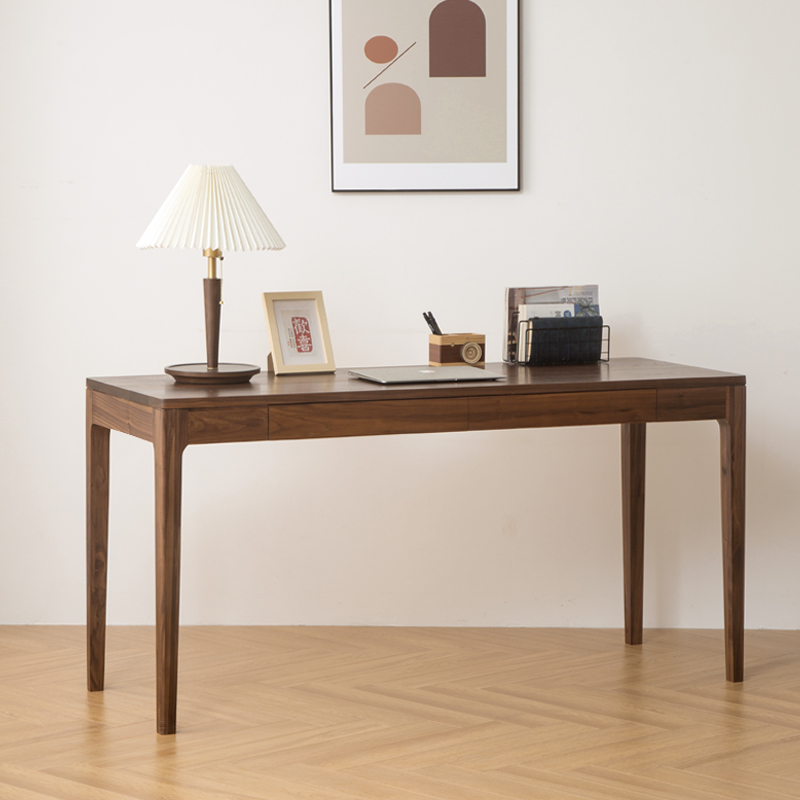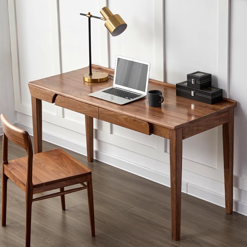 北美黑胡桃木书桌全实木樱桃木电脑桌北欧轻奢办公桌白橡木学习桌