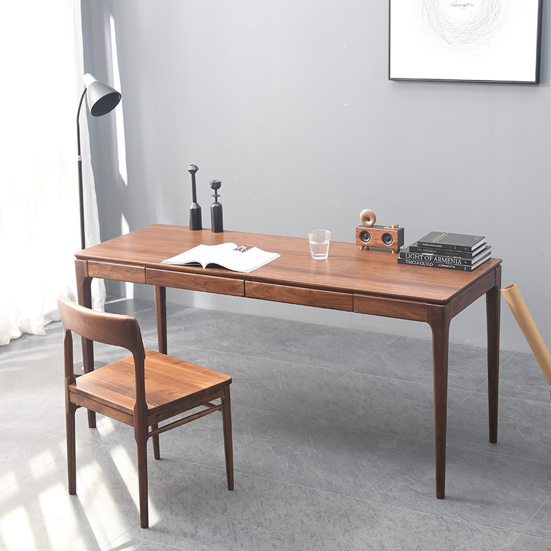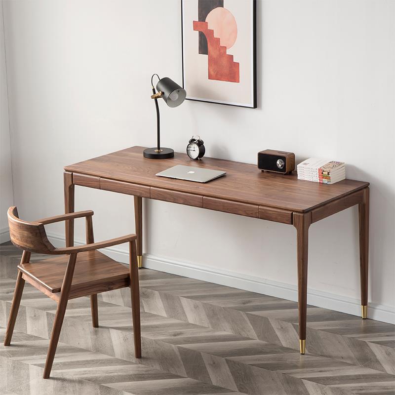 全实木黑胡桃木书桌电脑桌简约现代白橡木家用学习桌办公桌写字台