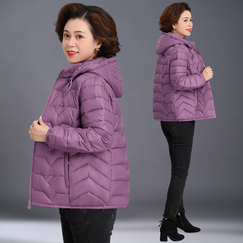 新秋冬季连带帽妈妈装轻薄羽绒棉衣大码显瘦中老年女装小棉袄棉服