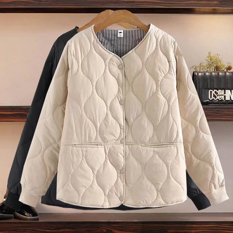 秋冬装新款羽绒棉棉衣冬季丝绵翻领轻薄棉袄中老年大码宽松外套女