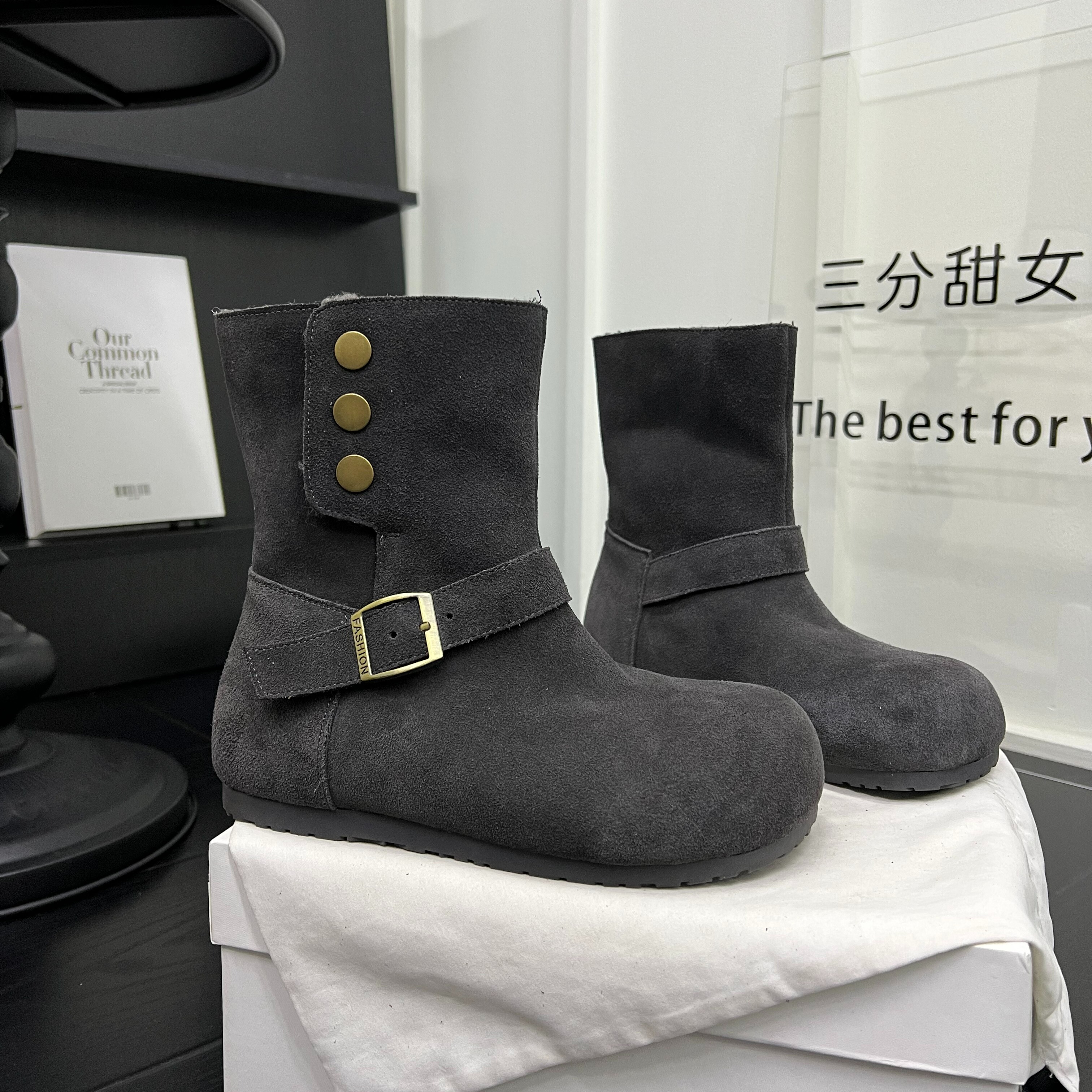 韩系大头磨砂皮羊毛平底马丁靴女2025年爆款休闲短靴加绒保暖棉靴