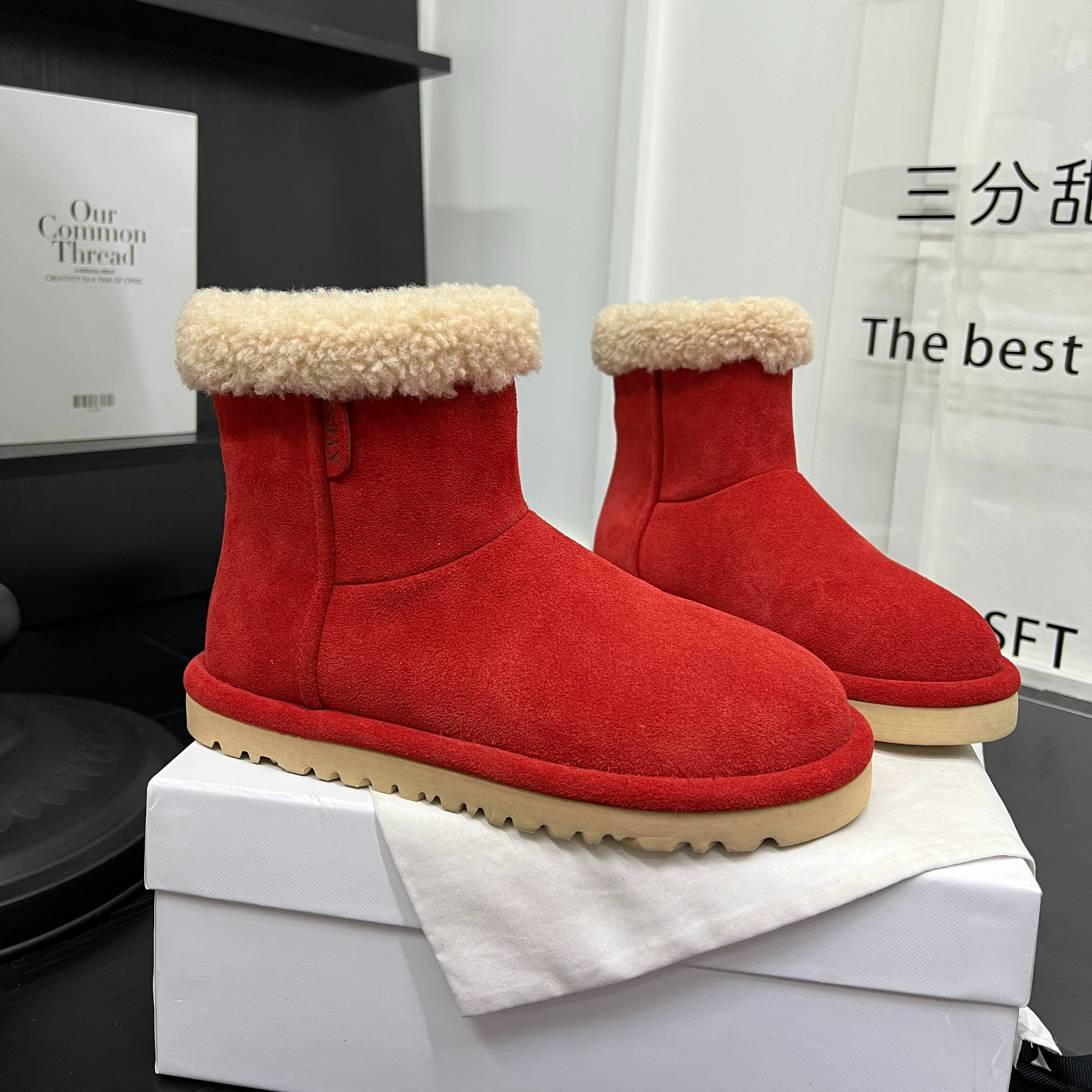 2025冬季新款雪地靴真皮磨砂娃娃头加绒加厚保暖雪地棉平底短靴女