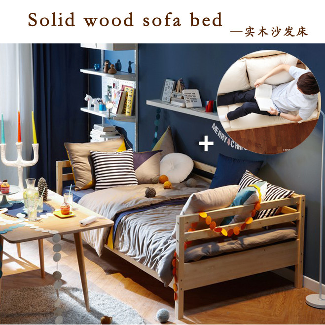 简约实木沙发床1.2米小户型单人多功能坐卧两用客厅简易北欧沙发